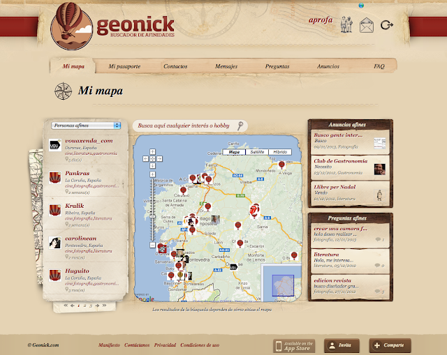 A particularidade de Geonick, e o seu atractivo polo menos inicial, é que che propón unha viaxe marcada polas afinidades e non a través dos contactos persoais.