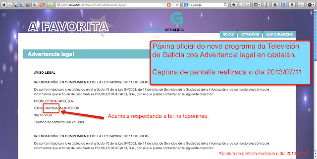 Está visto que para a PRODUCTORA FARO, S.A. o galego vale para ir de verbena pero non para as cousas serias, pero os contidos da páxina web dun programa da Televisión Galega non terían que estar “todiños” en galego?